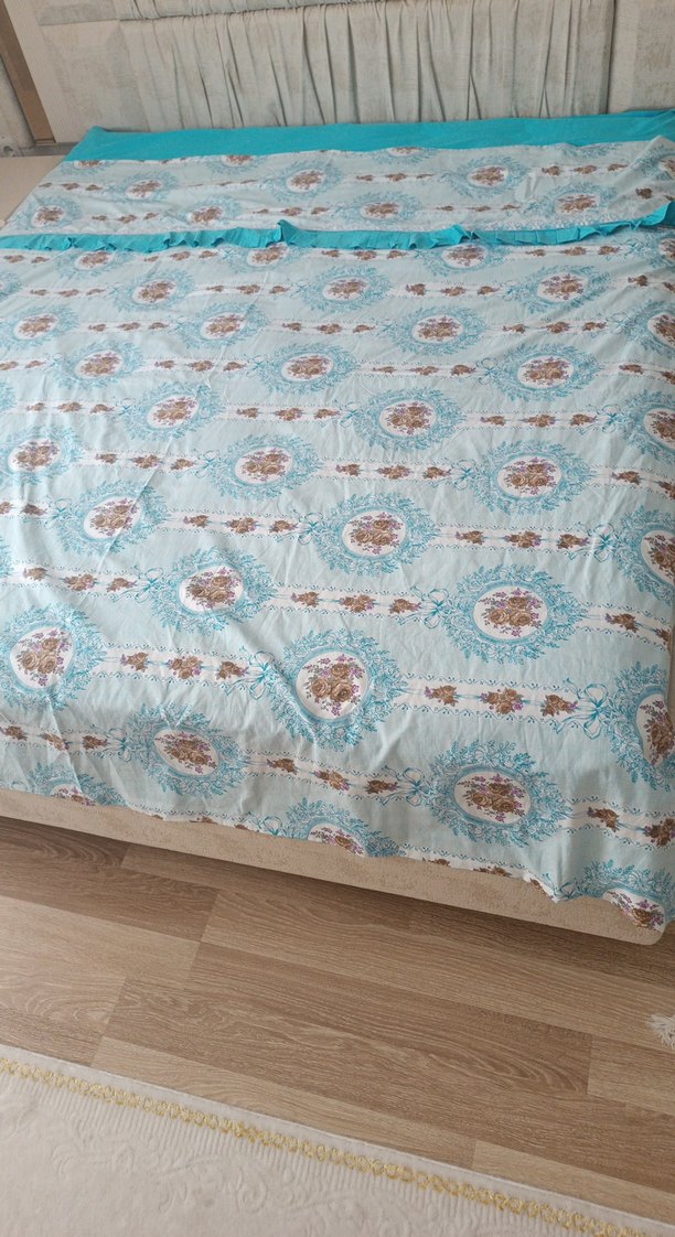 Turkuaz Baskılı Yatak Örtüsü çarşaf ve nevresim takımı yastiksiz