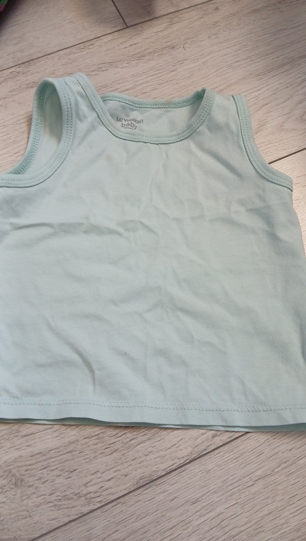 Pastel turkuaz renkte, desensiz, yumuşak dokulu çocuk atletidir.