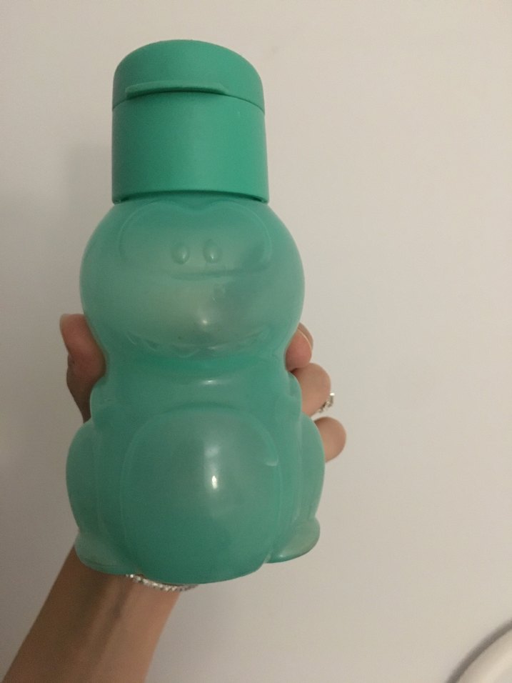 Sevimli hayvan şeklinde, kolay tutulabilen pastel turkuaz renkli bebek biberonu.