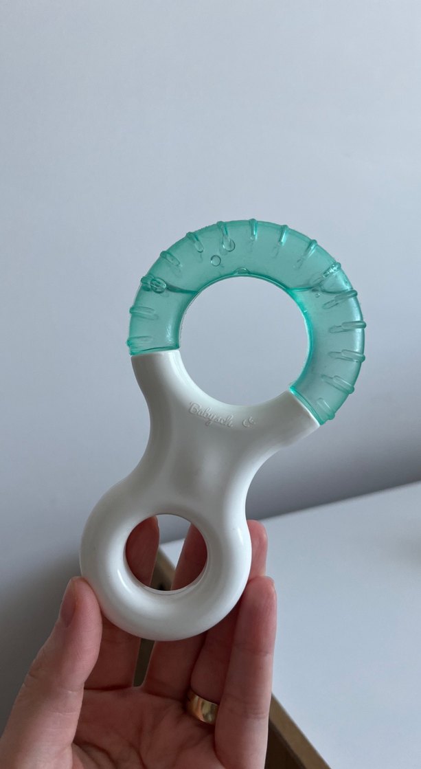 Turkuaz pastel renkli halkası ve beyaz sapı ile kolay tutulabilen bebek emziği. Diş kaşıyıcı kaynatıp kaynatıp bebeğin eline verilebilir