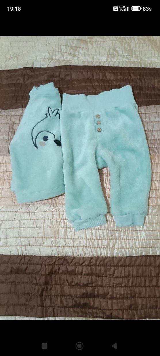Turkuaz renkli, düğmeli ve uzun kollu bebek erkek takımı. Yumuşak ve sıcak kumaştan yapılmıştır, sade tasarımlıdır. Rahat kullanım sağlar.