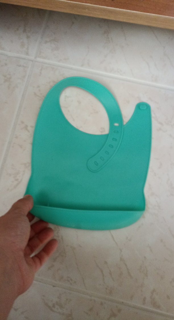 Ayarlanabilir boyun askısı ve yiyecek tutma cebine sahip turkuaz renkli bebek mama önlüğü. Yumuşak ve kolay temizlenebilir malzemeden yapılmıştır.