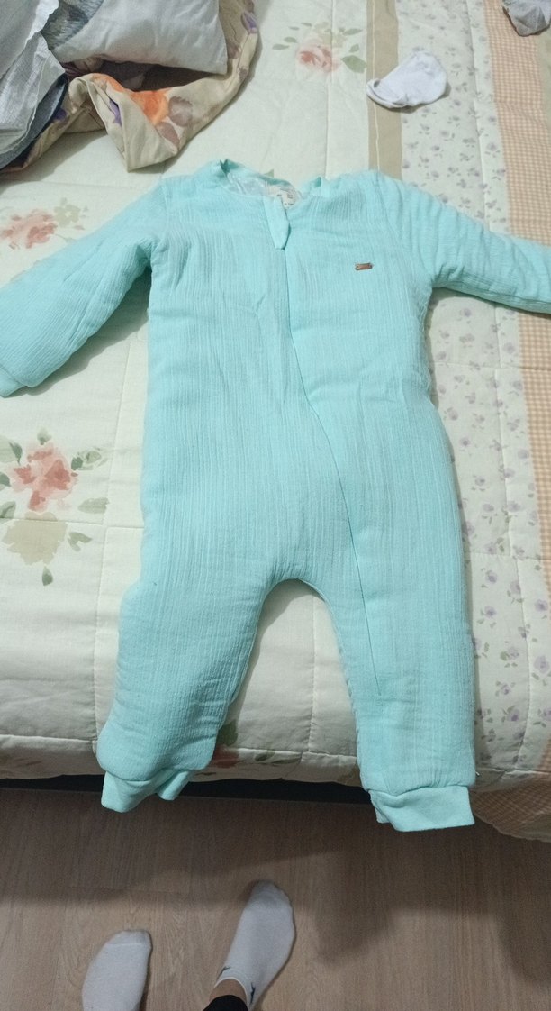 2 3 yaş desede 1 1bucuk yaşa daha iyi olur.Yumuşak keten kumaştan yapılmış, uzun kollu ve fermuarlı turkuaz bebek tulumu, sade normcore tarzında. Hastane kullanımı için uygun. sadece 1 kere giyildi oğluma küçük geldi