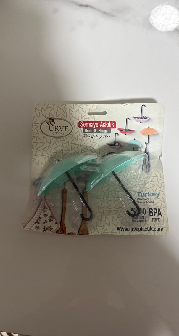Turkuaz renkli, bohem tarzda kadın şemsiye askılığı. BPA içermeyen URVE markası, sade ve rahat ortamlara uygundur. ☂️