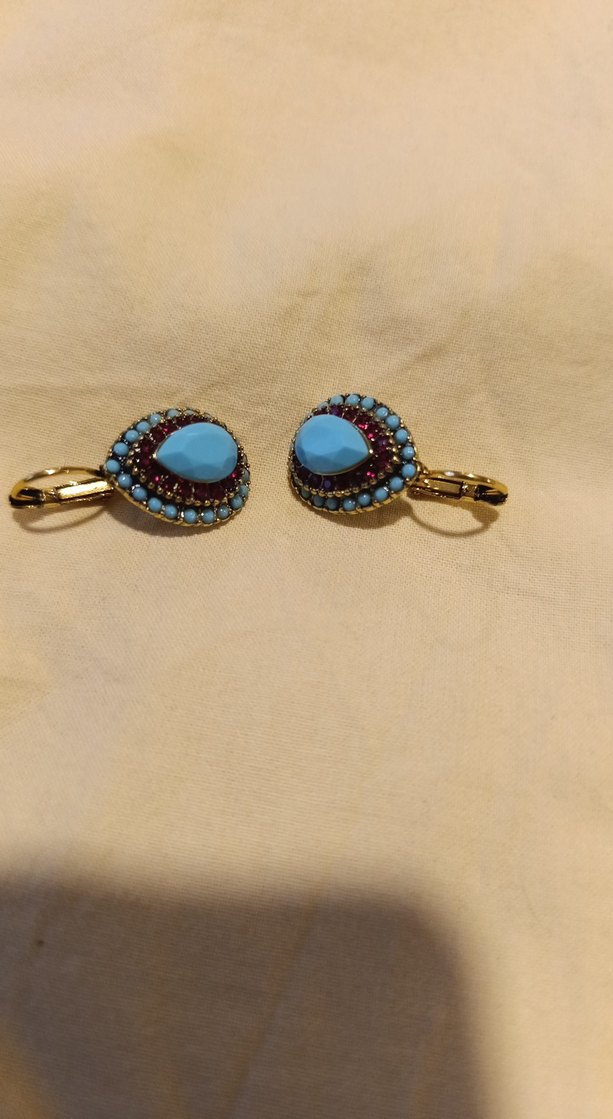 Boncuk işlemeli, turkuaz renkli mini küpeler. Bohem tarzıyla romantik akşamlar için uygun.