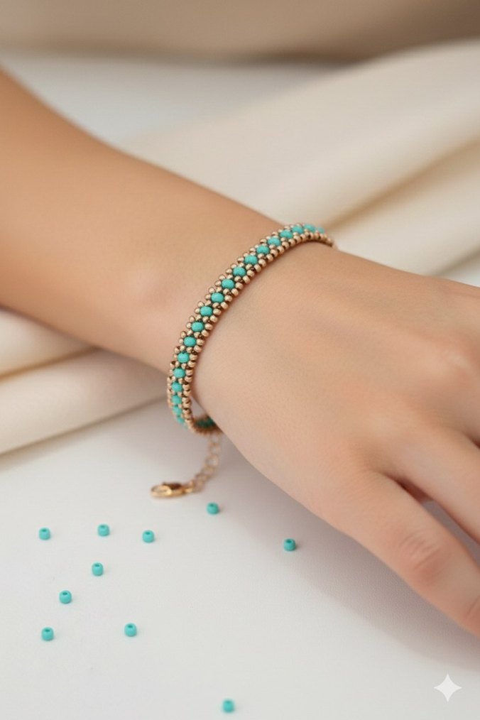 Turkuaz Boncuklu Bohem Bileklik