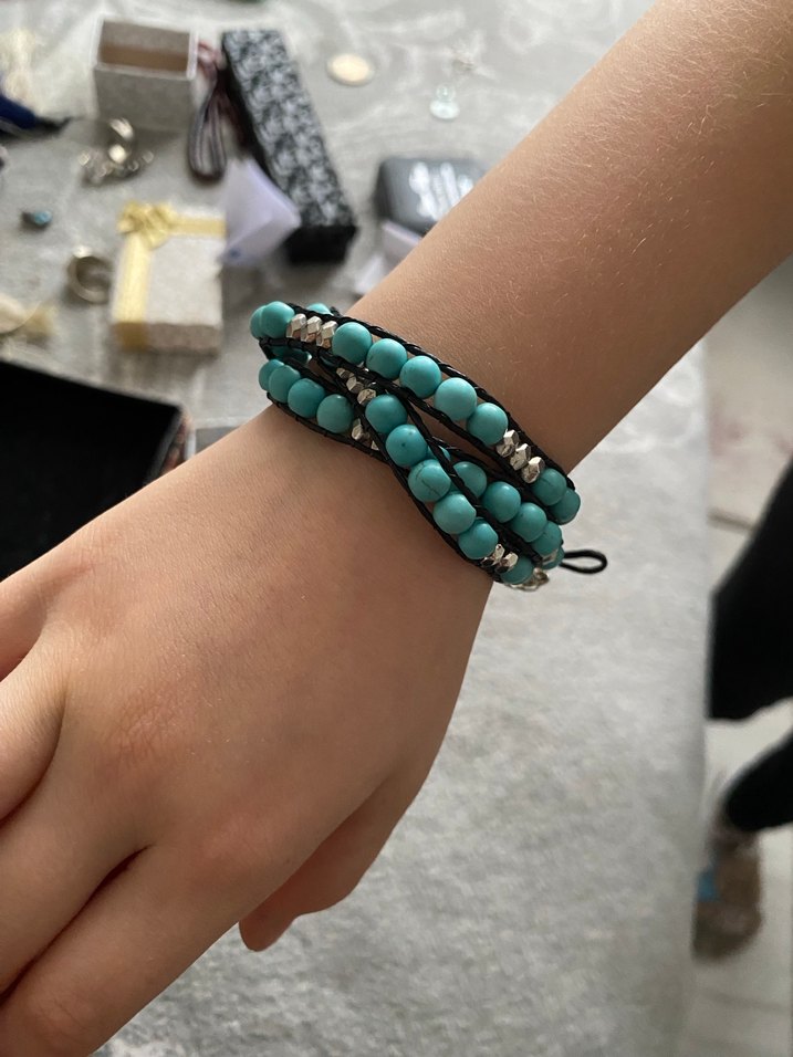 Gümüş detaylı turkuaz boncuklardan oluşan, günlük kullanıma uygun bohem tarz bileklik.