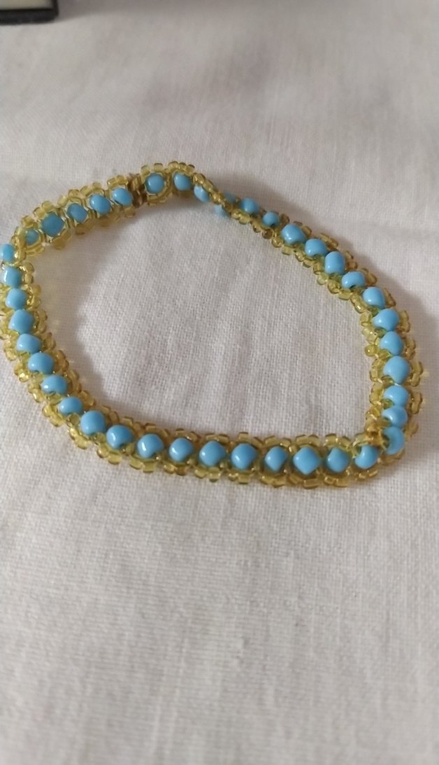 Turkuaz boncuklarla işlenmiş, bohem tarzda günlük kullanıma uygun vintage ve hippie havası taşıyan bileklik.