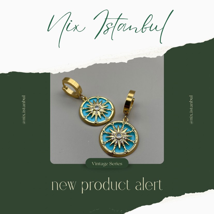 Turkuaz boncuk detaylı, renkli baskılı bohem mini küpe. Vintage Serisi'nden, günlük kullanıma uygun. ✨