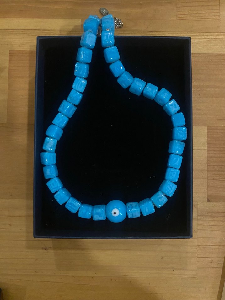 Turkuaz Boncuklu gercek tasli Tasarim kolte