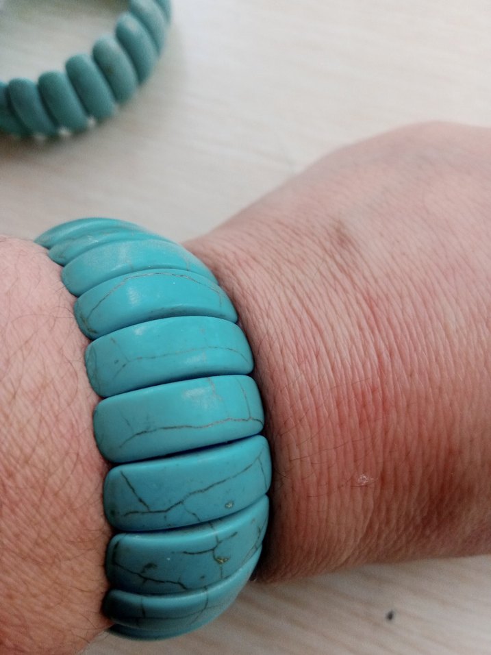 Pürüzsüz ve kavisli boncuklardan oluşan turkuaz renkli bileklik, minimalist ve renkli bohem tarzı sunar. Günlük kullanım için uygundur.