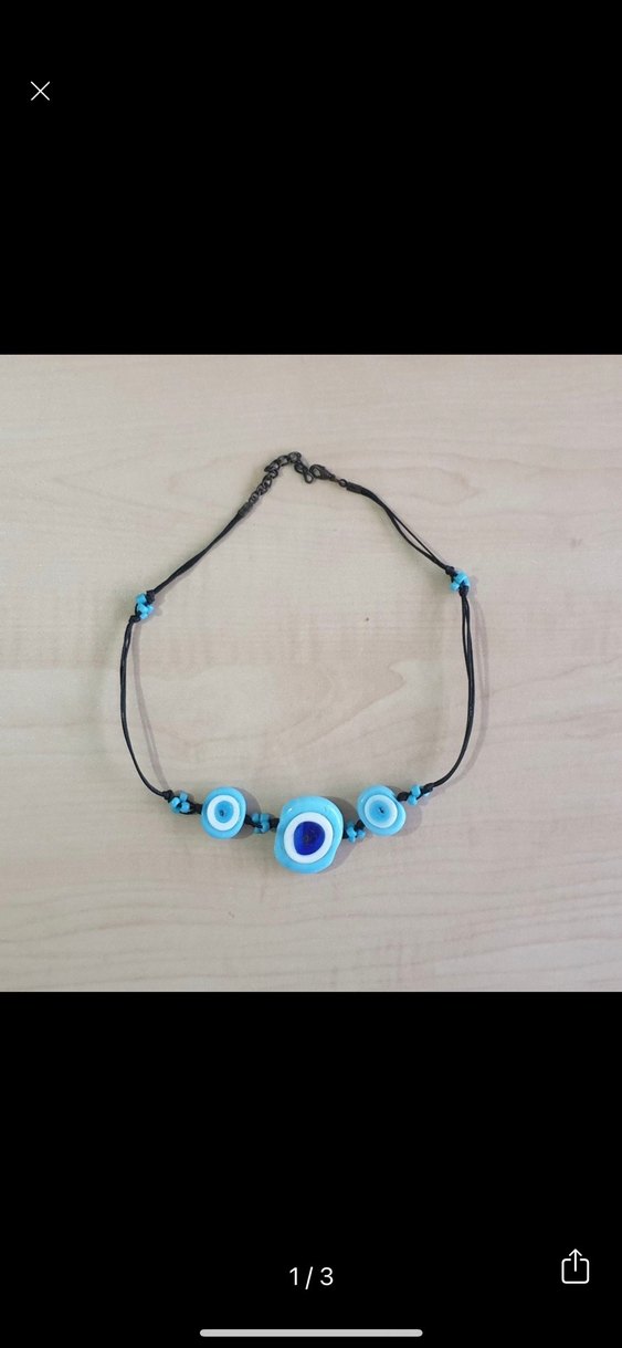 Bohem tarzda, turkuaz boncuklar ve nakış detaylı kısa ipli kadın kolyesi, günlük kullanıma uygundur.