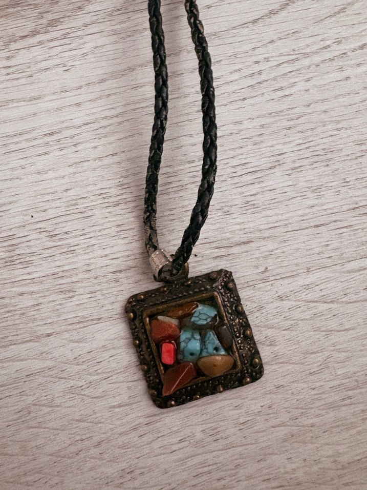 Örgülü koyu ip üzerinde boncuklu turkuaz etnik kısa bohem kolye, günlük kullanım için uygundur.