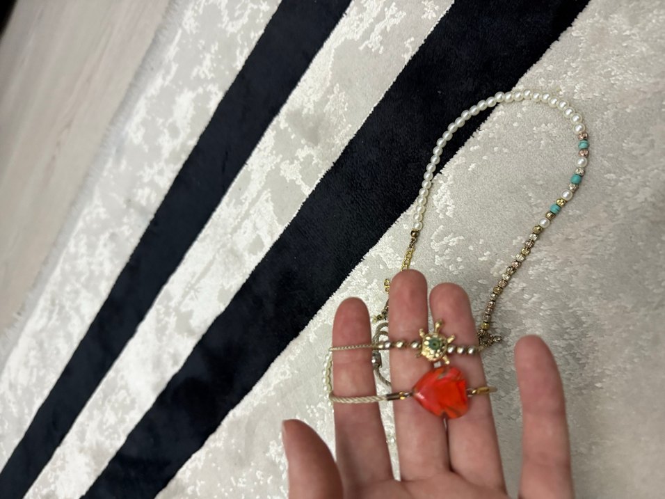 Turkuaz boncuklarla süslenmiş, yılan desenli midi uzunlukta minimalist bohem tarzda kadın kolye. Günlük kullanıma uygundur.