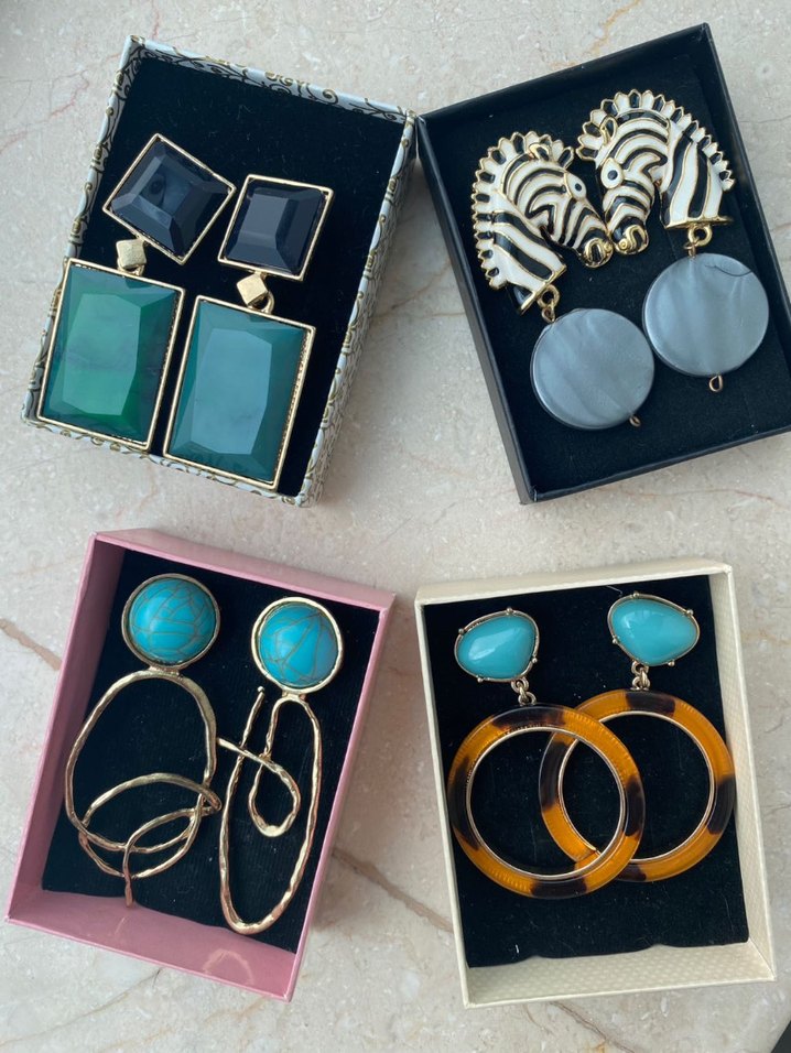 Turkuaz renkli, boncuklu ve desenli mini küpeler, bohem ve retro tarzları romantik akşamlar için tamamlar.