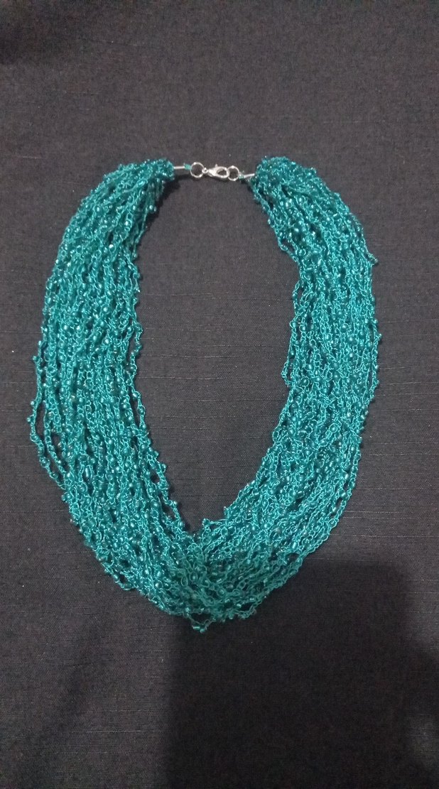 Bu uzun, boncuklu kolye canlı yeşil renkte olup bohem tarzdadır, günlük kullanım için uygundur.