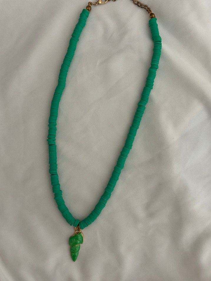 Uzun turkuaz boncuklu kolye, küçük bir uç ile minimal bohem tarzını yansıtıyor. Günlük kullanım için uygundur.