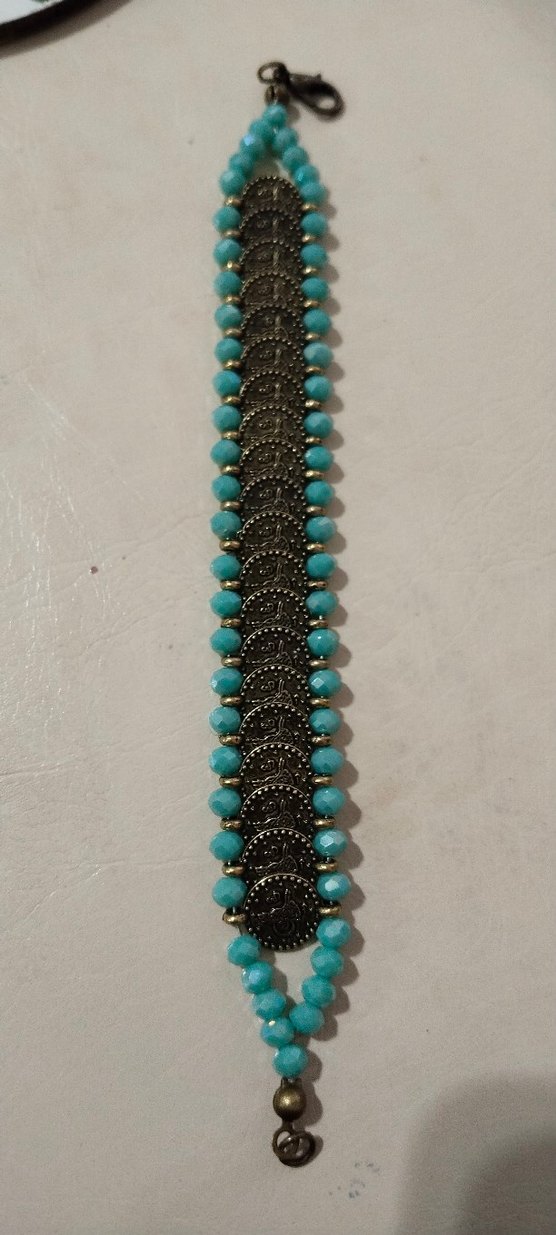 Turkuaz Boncuklu Yılan Desenli Bohem Bileklik,el yapımı Wintage