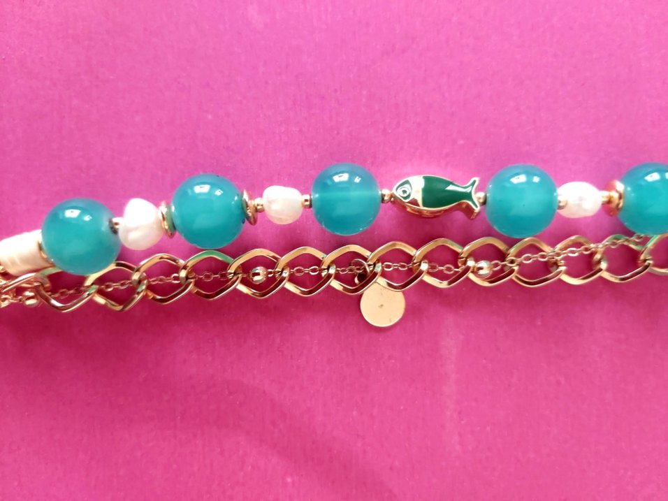 Turkuaz Boncuklu Zincir Detaylı Balık Bileklik