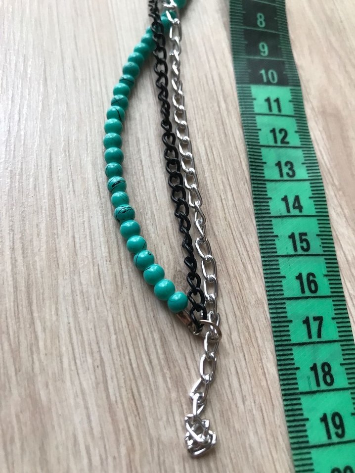 Turkuaz Boncuklu Zincir Detaylı Bileklil