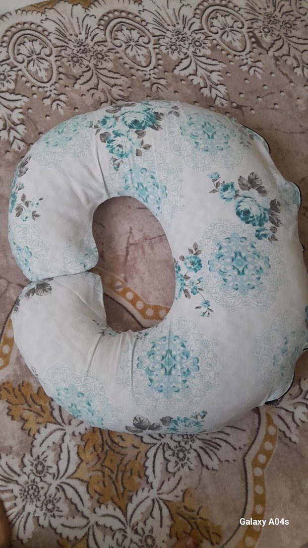 Pastel turkuaz çiçek desenli emzirme ve hamile yastığı, anne ve bebek için konforlu destek sağlar. reflüsü olan hastalarda kullanabilir büyuk kolaylık sağlıyor
