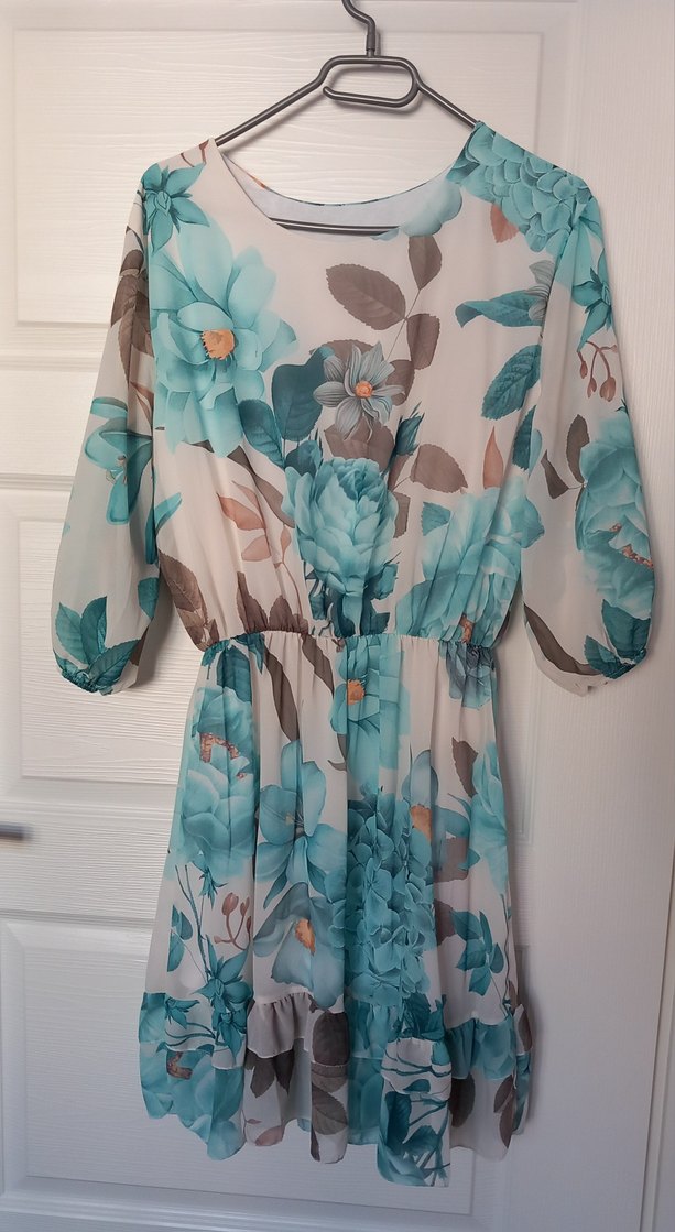 Turkuaz renkte, çiçek desenli, bol kesim, 3/4 kollu ve yuvarlak yaka tunik. Yumuşak sentetik kumaştan, fırfır detaylı, günlük kullanıma uygun.
