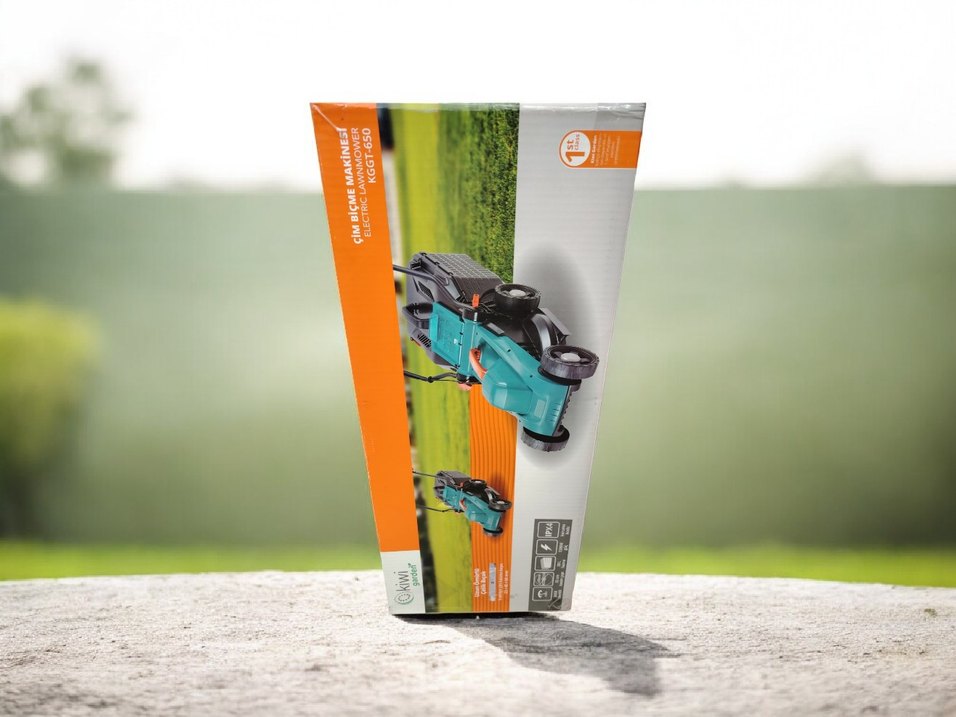Elektrikli turkuaz çim biçme makinesi, kolay kullanım ve etkili kesim sunar. 2 yııl garantilidir.