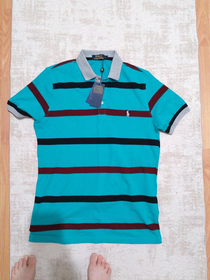 Turkuaz renkli, kısa kollu ve yakalı erkek polo tişört. Yeni ve etiketli