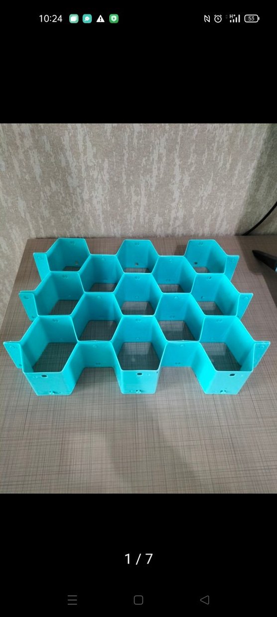 Turkuaz renkte, petek desenli çok bölmeli dolap düzenleyici. Eşyalarınızı düzenli ve kolay erişilebilir tutar.