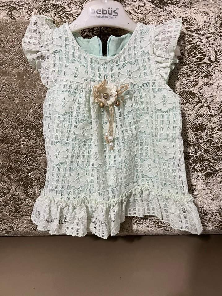 Turkuaz renk, nakışlı dantel detaylı, V yakalı ve bol kesim bohem tarz kız elbisesi. Yumuşak triko kumaştan üretilmiştir.