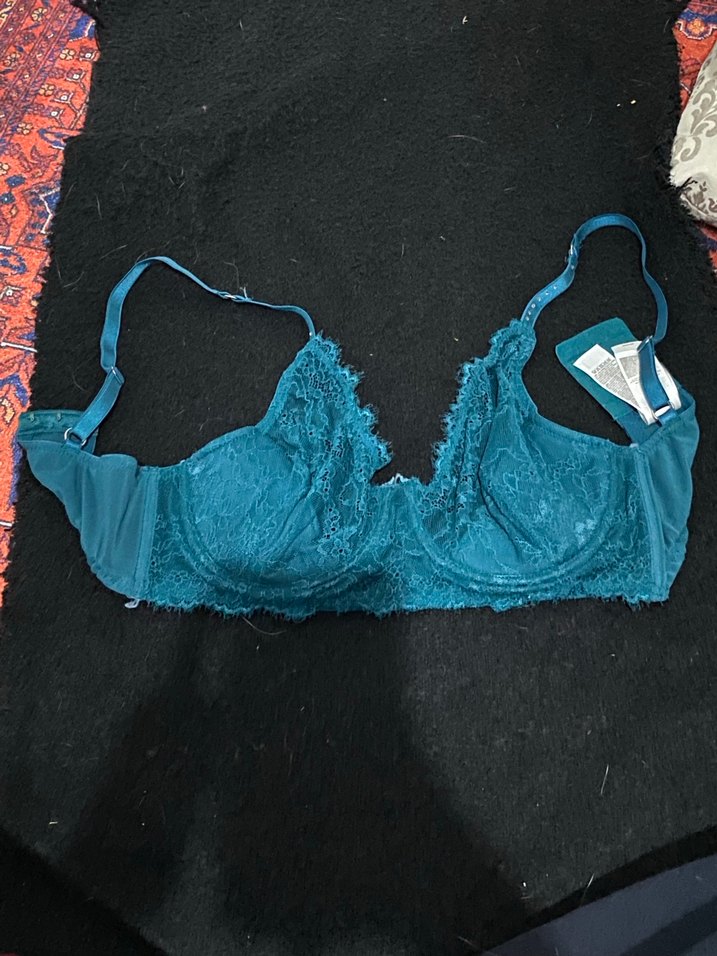 Turkuaz renkte, dantel detaylı ve ayarlanabilir askılı, rahat bohem tarzda sütyen.