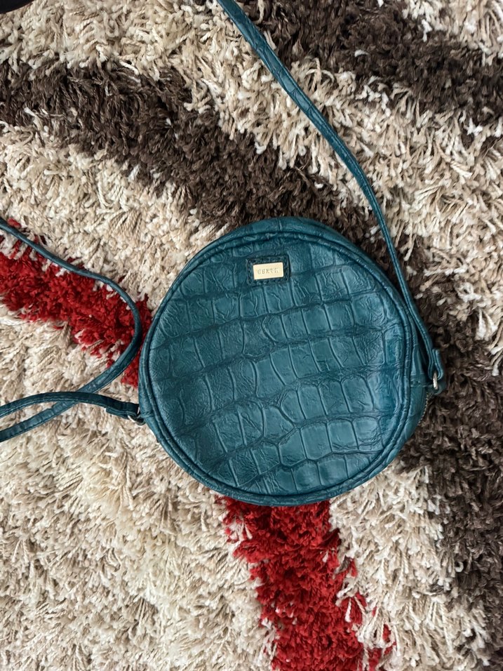 Turkuaz Deri Yılan Desenli Yuvarlak Çanta