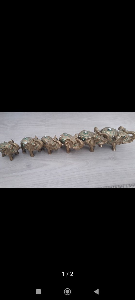 Turkuaz detaylı gri fil figürleri seti, farklı boylarda sıralanmış. Dekoratif ve koleksiyonluk ürünler.