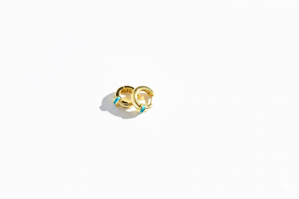 Turkuaz detaylı zincirli mini halka küpe, günlük kullanım için ince deseni ile tasarlanmıştır.