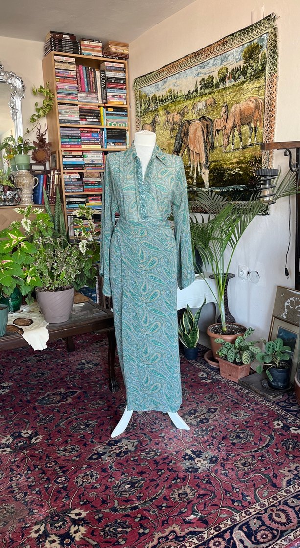 Turkuaz renkte, uzun kollu bohem elbise, yumuşak ve ipeksi kumaş, pastel tonlarda batik desenli, drapeli ve yakası çentikli. Günlük kullanıma uygun regular fit. TÜL ELBİSE TAMAMEN TÜLDÜR, bağlamalı elbise