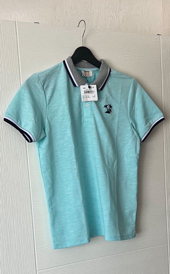 Turkuaz Düğmeli Pamuklu Erkek Polo Tişör 11. 12. Yaş orjinal