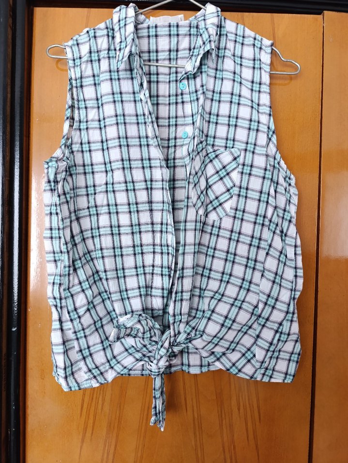 Turkuaz Ekose Desenli Kolsuz Gömlek