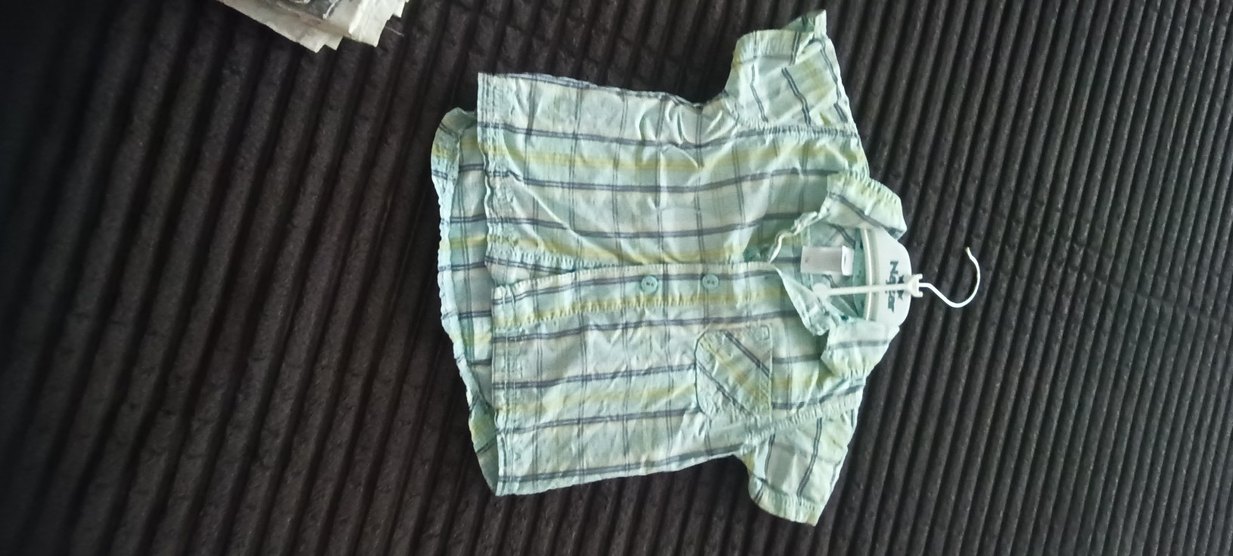 Turkuaz renkli, kısa kollu, yakalı ve düğmeli erkek çocuk gömleği. Rahat kesim ve hafif kare desenli, yumuşak keten kumaştan yapılmıştır.2 defa kullanıldı tertemiz görünce anlarsınız zaten.Yikayip kaldırdım.