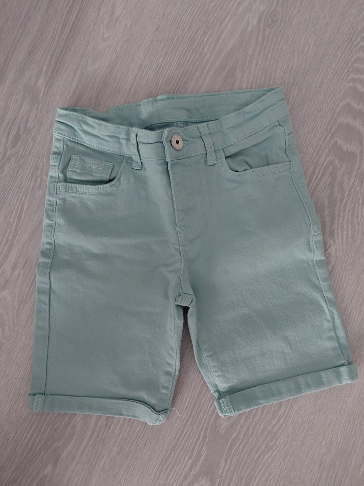 Turkuaz renkli, regular fit denim erkek şort. Rahat ve şık sokak stili için uygundur.