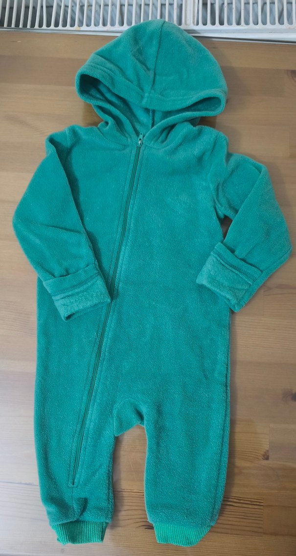Turkuaz renkli, fermuarlı ve kapüşonlu bebek tulumu, yumuşak ve sıcak kumaştan üretilmiştir. Sokak stiline uygundur. ❄️9 ay. hiç giyilmedi.