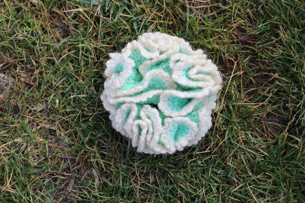 Yumuşak yünden yapılmış, turkuaz ve beyaz renklerde fırfırlı bohem tarzı saç aksesuarı. Sıcacık ve renkli bir dokunuş katıyor.