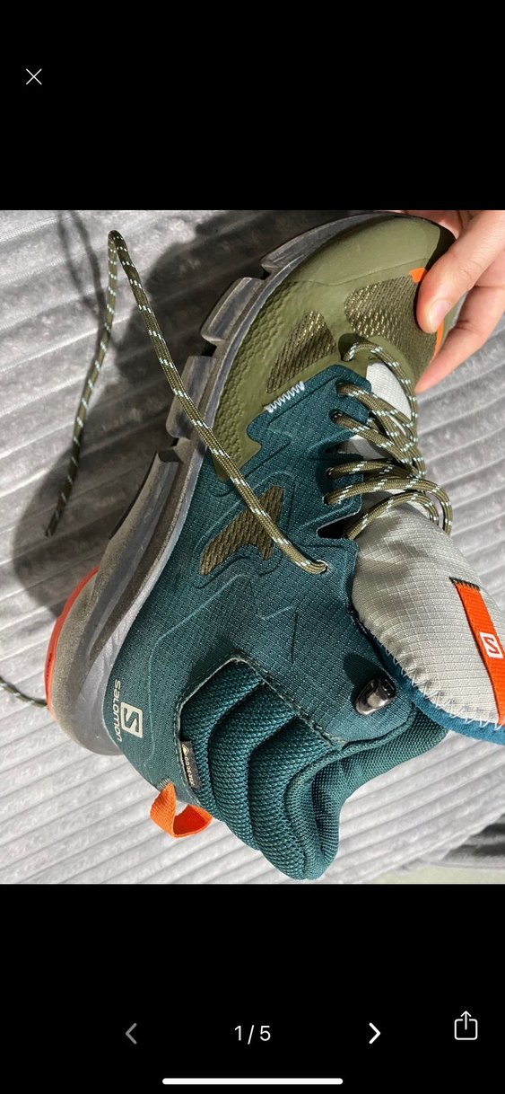 Bağcıklı, turkuaz ve gri renklerde baskılı erkek outdoor spor ayakkabısı. Dayanıklı kauçuk tabanlı, sportif sokak tarzına uygun. Salomon orijinal 41.5