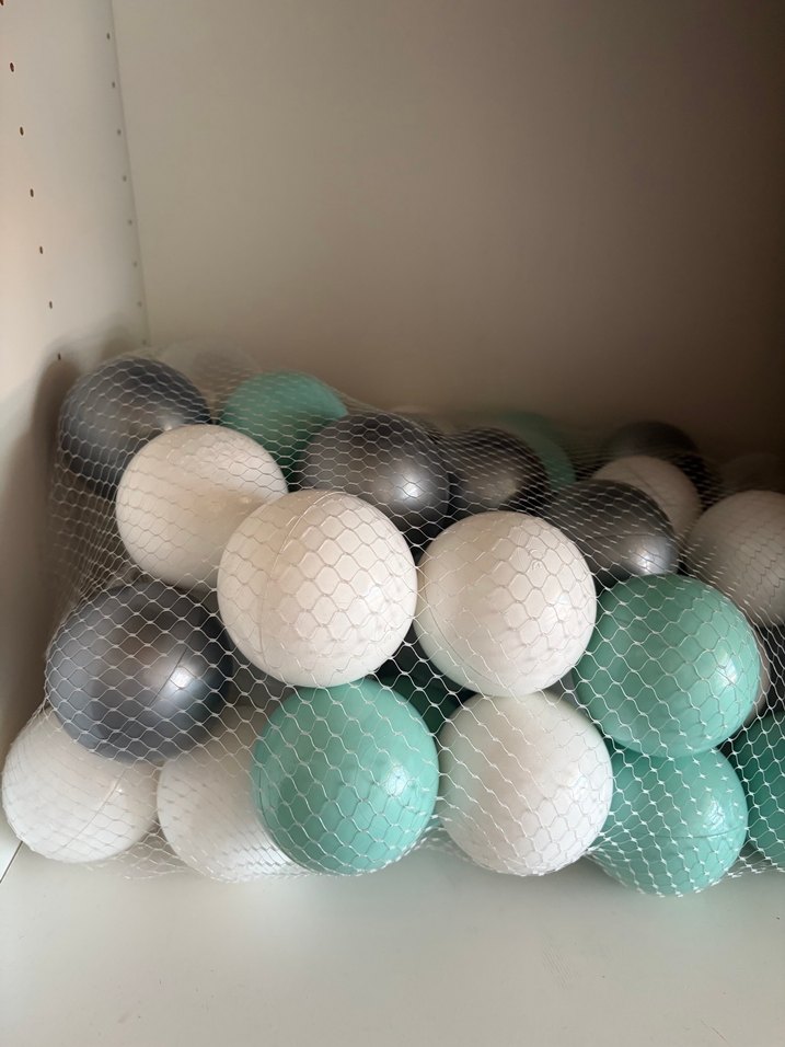 Turkuaz, Gri ve Beyaz Oyun Topları Turkuaz, gri ve beyaz renklerde oyun topları seti, file torbada paketlenmiş. Farklı oyun aktiviteleri için uygun. Filesi açılmamış yenidir, elimde pembe şeffaf ve beyaz renklerde toplar da mevcut isteyen yazabilir :) #top #tophavuzu #oyuntopu #oyuncak 50 adet olması lazım