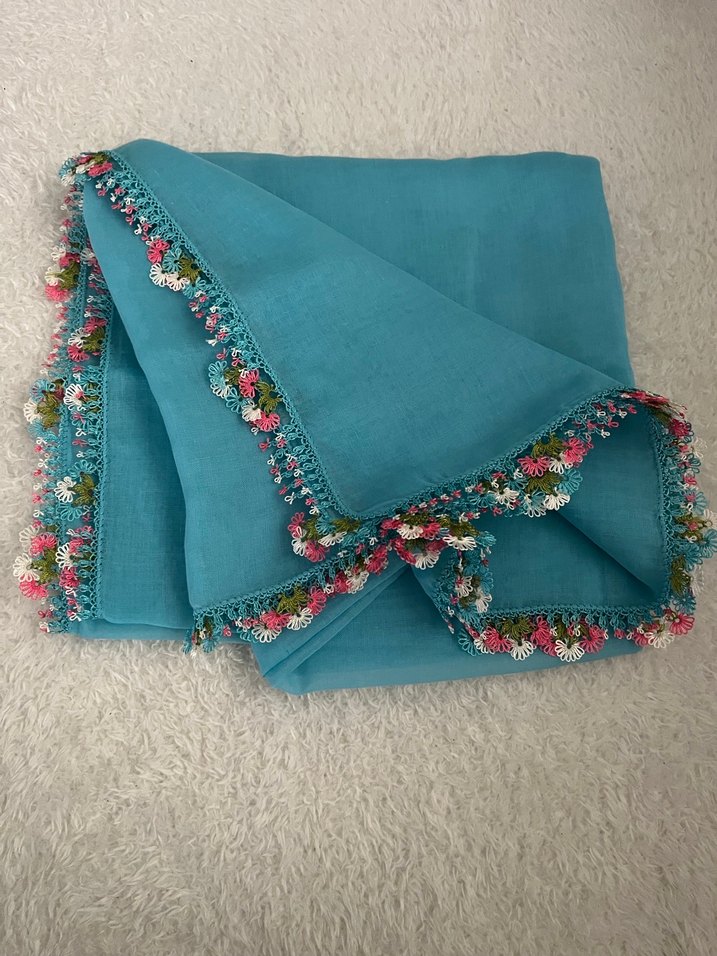 İğne oyası Detaylı Turkuaz Kadın eşarp&yazma&tülbent 90*100 cm ebatlıdır.