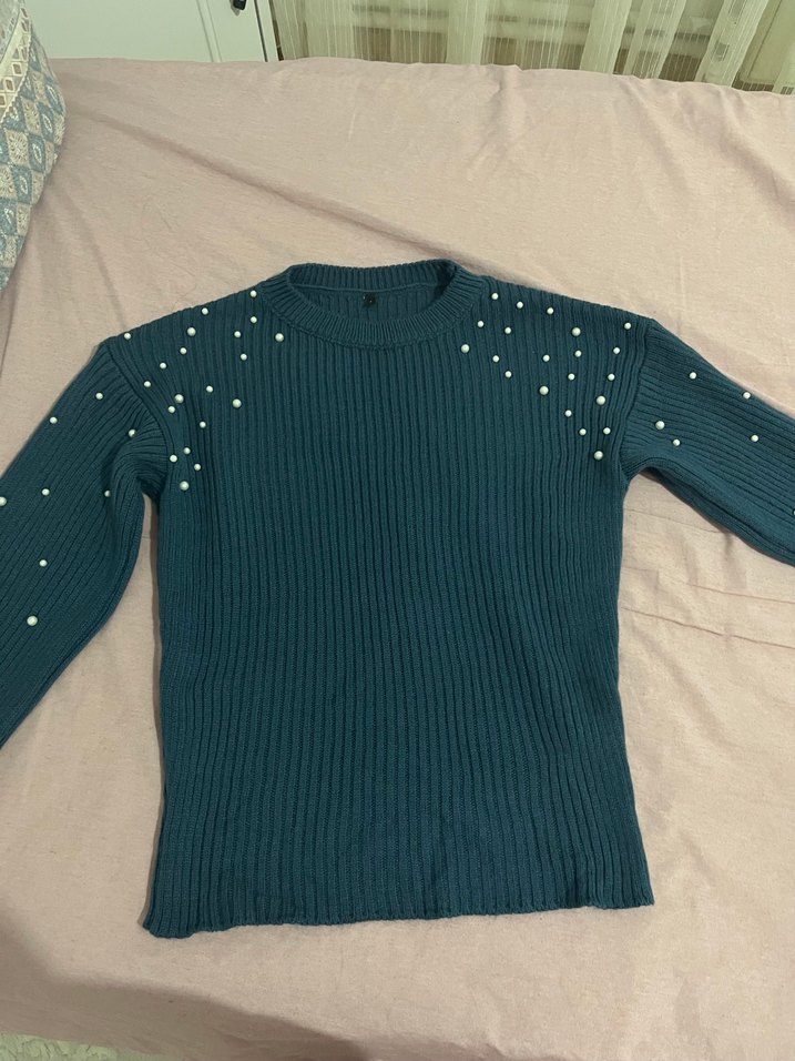Turkuaz İnce Triko Kadın Kazak