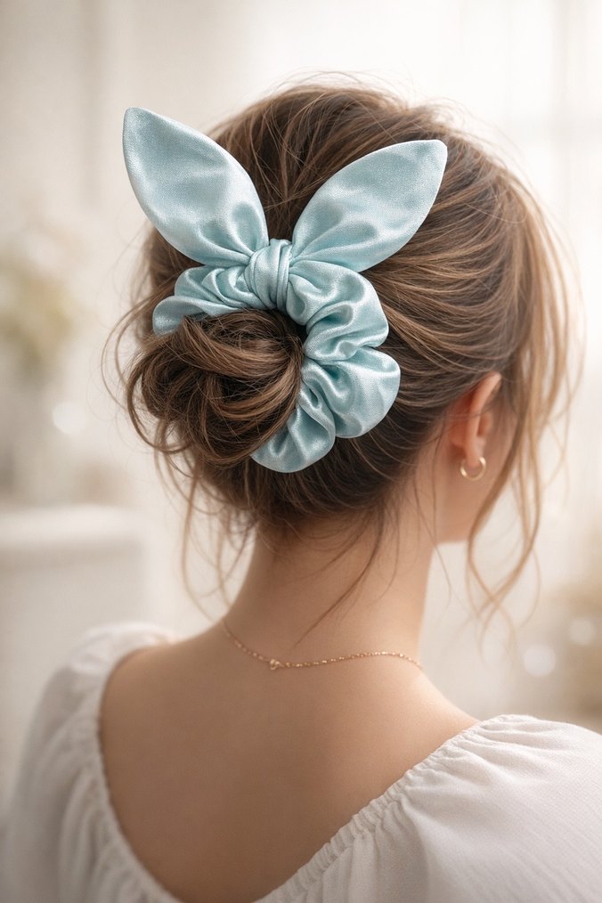 Turkuaz renkli, ipeksi kumaştan yapılmış, fiyonk detaylı saç tokası. Bohem ve retro tarzı ile saçlara yumuşak bir dokunuş sağlar.
