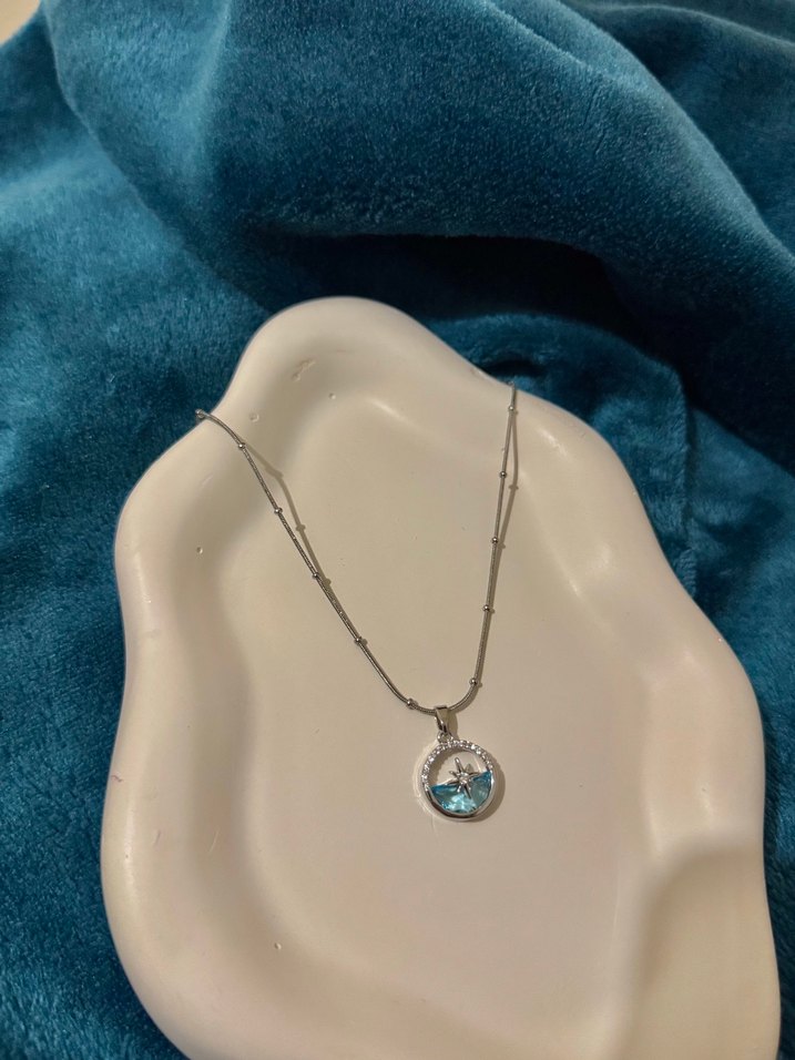 Turkuaz İşlemeli Midi Kolye