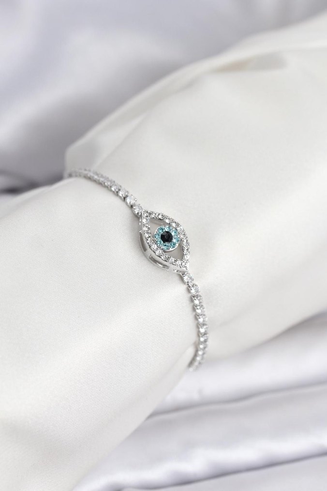 Kadın bileklik, zarif zincir ve işlemeli turkuaz detaylarla modern klasik ve minimalist şıklığı bir araya getirir, düğünler için uygundur. 8241