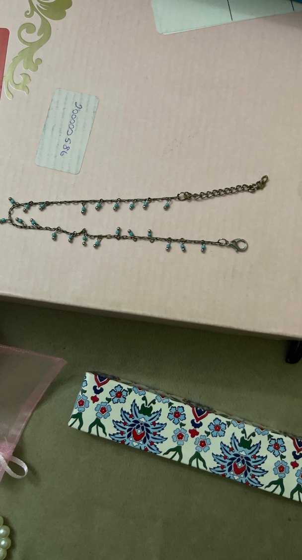 Turkuaz İşlemeli Zincir Detaylı Kadın El Zinciri yâda bileklik