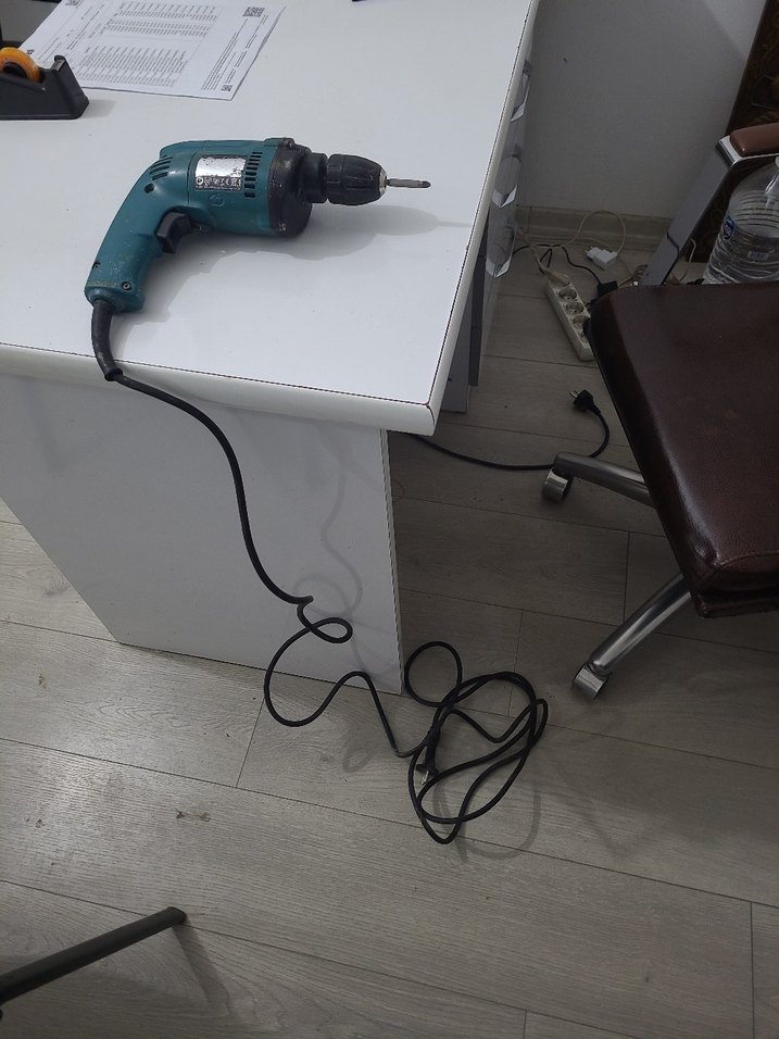 Turkuaz renkli, kablolu elektrikli matkap, uzun siyah güç kablosu ile çeşitli delme işleriniz için uygundur. ⚙️